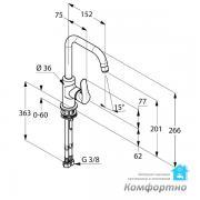 Вынос излива: 152 мм